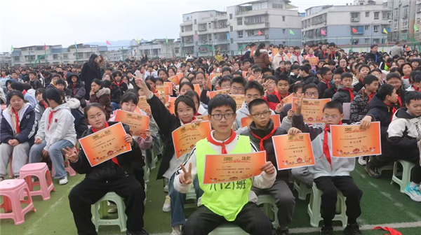 典礼上,教务处、政教处依次对学业优秀学生、进步显著学生、“五好少年”及优秀学生干部进行表彰,榜样力量催人奋进,激励全体同学以先进为标杆,比学赶超、力争上游。