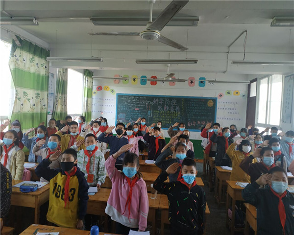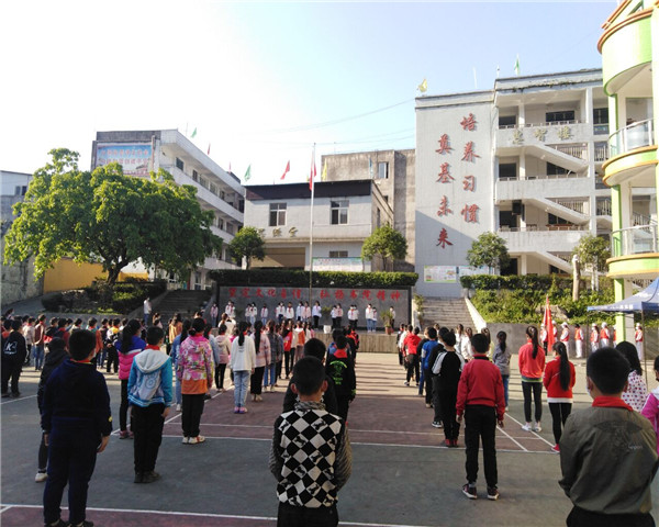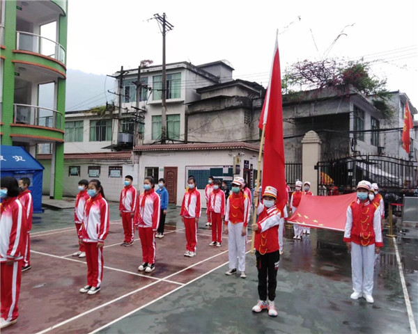4月27日上午,筠连县镇舟镇中心校举行升国旗仪式。四年级学生操场集合进行升国旗仪式,其他年级学生在各班教室进行。